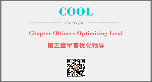 上述内容是“Chapter Officers Optimizing Lead”作为“COOL”的缩写,解释为“第五章军官优化领导”时的信息,以及英文缩略词COOL所代表的英文单词,其对应的中文拼音、详细解释以及在英文中的流行度和相关分类、应用领域及应用示例等。