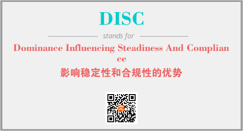 上述内容是“Dominance Influencing Steadiness And Compliance”作为“DISC”的缩写,解释为“影响稳定性和合规性的优势”时的信息,以及英文缩略词DISC所代表的英文单词,其对应的中文拼音、详细解释以及在英文中的流行度和相关分类、应用领域及应用示例等。