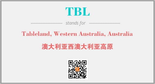 上述内容是“Tableland, Western Australia, Australia”作为“TBL”的缩写,解释为“澳大利亚西澳大利亚高原”时的信息,以及英文缩略词TBL所代表的英文单词,其对应的中文拼音、详细解释以及在英文中的流行度和相关分类、应用领域及应用示例等。