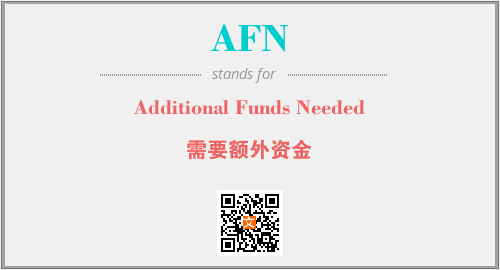 上述内容是“Additional Funds Needed”作为“AFN”的缩写,解释为“需要额外资金”时的信息,以及英文缩略词AFN所代表的英文单词,其对应的中文拼音、详细解释以及在英文中的流行度和相关分类、应用领域及应用示例等。