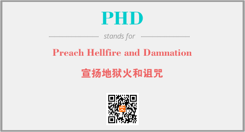 以上为Preach Hellfire and Damnation英文缩略词PHD的中文解释,以及该英文缩写在英语的流行度、分类和应用领域方面的信息。