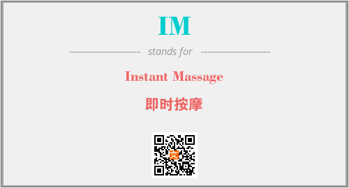 英文缩略词“IM”经常作为“Instant Massage”的英文缩写来使用,中文表示:“即时按摩”。本文将详细介绍英文缩写词IM所代表英文单词,其对应的中文拼音、详细解释以及在英语中的流行度。此外,还有关于缩略词IM的分类、应用领域及相关应用示例等。