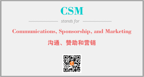 英文缩略词“CSM”经常作为“Communications, Sponsorship, and Marketing”的英文缩写来使用,中文表示:“沟通、赞助和营销”。本文将详细介绍英文缩写词CSM所代表英文单词,其对应的中文拼音、详细解释以及在英语中的流行度。此外,还有关于缩略词CSM的分类、应用领域及相关应用示例等。