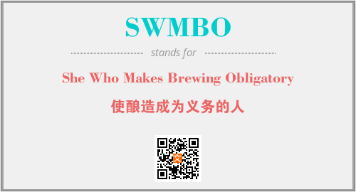 英文缩略词“SWMBO”经常作为“She Who Makes Brewing Obligatory”的英文缩写来使用,中文表示:“使酿造成为义务的人”。本文将详细介绍英文缩写词SWMBO所代表英文单词,其对应的中文拼音、详细解释以及在英语中的流行度。此外,还有关于缩略词SWMBO的分类、应用领域及相关应用示例等。