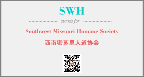 英文缩略词“SWH”经常作为“Southwest Missouri Humane Society”的英文缩写来使用,中文表示:“西南密苏里人道协会”。本文将详细介绍英文缩写词SWH所代表英文单词,其对应的中文拼音、详细解释以及在英语中的流行度。此外,还有关于缩略词SWH的分类、应用领域及相关应用示例等。