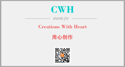 上述内容是“Creations With Heart”作为“CWH”的缩写,解释为“用心创作”时的信息,以及英文缩略词CWH所代表的英文单词,其对应的中文拼音、详细解释以及在英文中的流行度和相关分类、应用领域及应用示例等。