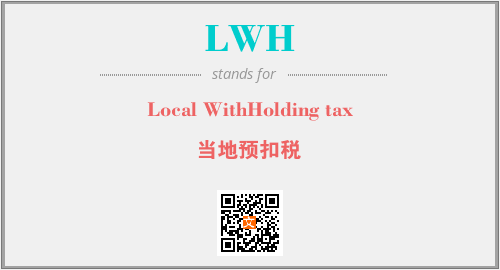 英文缩略词“LWH”经常作为“Local WithHolding tax”的英文缩写来使用,中文表示:“当地预扣税”。本文将详细介绍英文缩写词LWH所代表英文单词,其对应的中文拼音、详细解释以及在英语中的流行度。此外,还有关于缩略词LWH的分类、应用领域及相关应用示例等。