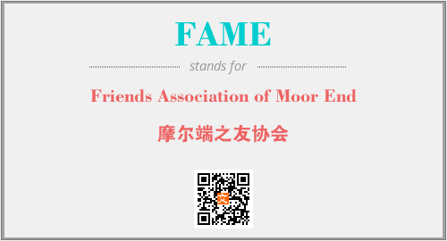 上述内容是“Friends Association of Moor End”作为“FAME”的缩写,解释为“摩尔端之友协会”时的信息,以及英文缩略词FAME所代表的英文单词,其对应的中文拼音、详细解释以及在英文中的流行度和相关分类、应用领域及应用示例等。