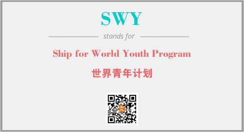 上述内容是“Ship for World Youth Program”作为“SWY”的缩写,解释为“世界青年计划”时的信息,以及英文缩略词SWY所代表的英文单词,其对应的中文拼音、详细解释以及在英文中的流行度和相关分类、应用领域及应用示例等。