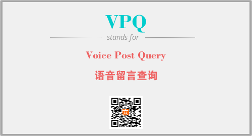 英文缩略词“VPQ”经常作为“Voice Post Query”的英文缩写来使用,中文表示:“语音留言查询”。本文将详细介绍英文缩写词VPQ所代表英文单词,其对应的中文拼音、详细解释以及在英语中的流行度。此外,还有关于缩略词VPQ的分类、应用领域及相关应用示例等。