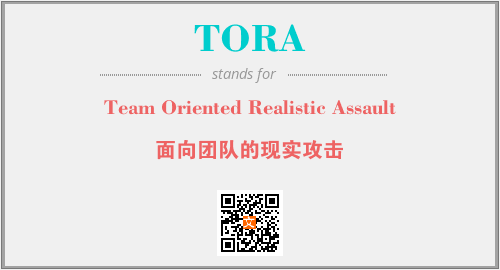 上述内容是“Team Oriented Realistic Assault”作为“TORA”的缩写,解释为“面向团队的现实攻击”时的信息,以及英文缩略词TORA所代表的英文单词,其对应的中文拼音、详细解释以及在英文中的流行度和相关分类、应用领域及应用示例等。