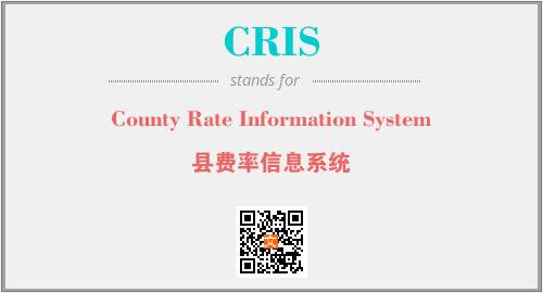 英文缩略词“CRIS”经常作为“County Rate Information System”的英文缩写来使用,中文表示:“县费率信息系统”。本文将详细介绍英文缩写词CRIS所代表英文单词,其对应的中文拼音、详细解释以及在英语中的流行度。此外,还有关于缩略词CRIS的分类、应用领域及相关应用示例等。