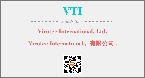 上述内容是“Virotec International, Ltd.”作为“VTI”的缩写,解释为“Virotec International,有限公司。”时的信息,以及英文缩略词VTI所代表的英文单词,其对应的中文拼音、详细解释以及在英文中的流行度和相关分类、应用领域及应用示例等。