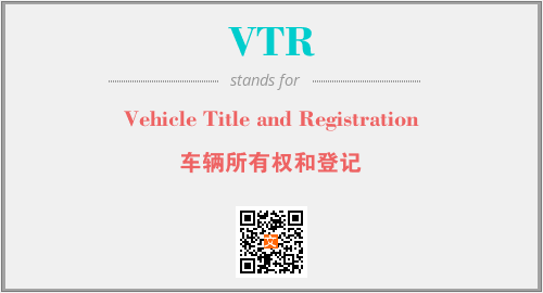 上述内容是“Vehicle Title and Registration”作为“VTR”的缩写,解释为“车辆所有权和登记”时的信息,以及英文缩略词VTR所代表的英文单词,其对应的中文拼音、详细解释以及在英文中的流行度和相关分类、应用领域及应用示例等。