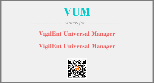 上述内容是“VigilEnt Universal Manager”作为“VUM”的缩写,解释为“VigilEnt Universal Manager”时的信息,以及英文缩略词VUM所代表的英文单词,其对应的中文拼音、详细解释以及在英文中的流行度和相关分类、应用领域及应用示例等。