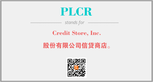 上述内容是“Credit Store, Inc.”作为“PLCR”的缩写,解释为“股份有限公司信贷商店。”时的信息,以及英文缩略词PLCR所代表的英文单词,其对应的中文拼音、详细解释以及在英文中的流行度和相关分类、应用领域及应用示例等。