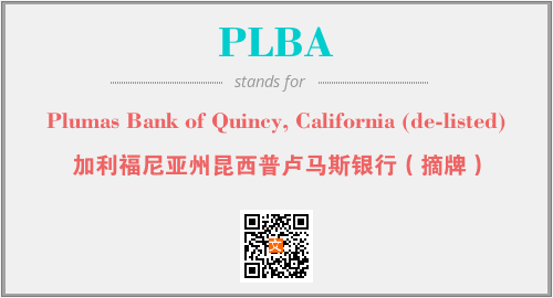 以上为Plumas Bank of Quincy, California (de-listed)英文缩略词PLBA的中文解释,以及该英文缩写在英语的流行度、分类和应用领域方面的信息。