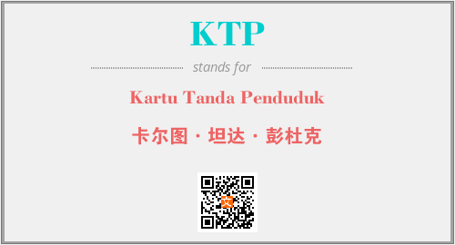 以上为Kartu Tanda Penduduk英文缩略词KTP的中文解释,以及该英文缩写在英语的流行度、分类和应用领域方面的信息。