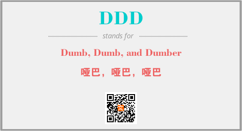 上述内容是“Dumb, Dumb, and Dumber”作为“DDD”的缩写,解释为“哑巴,哑巴,哑巴”时的信息,以及英文缩略词DDD所代表的英文单词,其对应的中文拼音、详细解释以及在英文中的流行度和相关分类、应用领域及应用示例等。