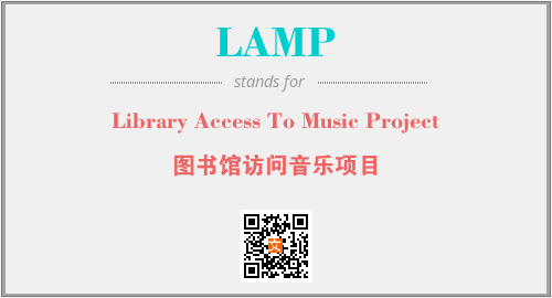 以上为Library Access To Music Project英文缩略词LAMP的中文解释,以及该英文缩写在英语的流行度、分类和应用领域方面的信息。