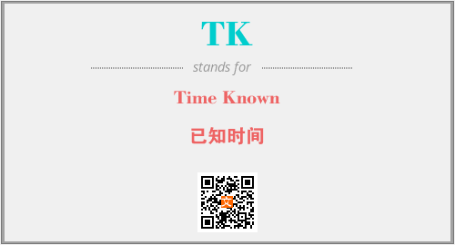 英文缩略词“TK”经常作为“Time Known”的英文缩写来使用,中文表示:“已知时间”。本文将详细介绍英文缩写词TK所代表英文单词,其对应的中文拼音、详细解释以及在英语中的流行度。此外,还有关于缩略词TK的分类、应用领域及相关应用示例等。