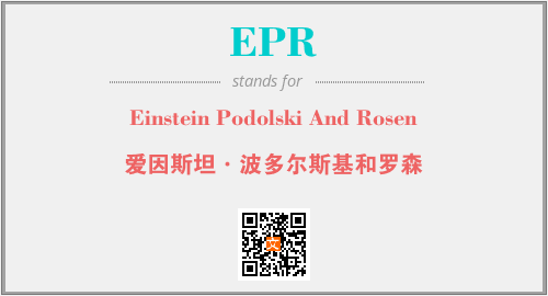 上述内容是“Einstein Podolski And Rosen”作为“EPR”的缩写,解释为“爱因斯坦·波多尔斯基和罗森”时的信息,以及英文缩略词EPR所代表的英文单词,其对应的中文拼音、详细解释以及在英文中的流行度和相关分类、应用领域及应用示例等。