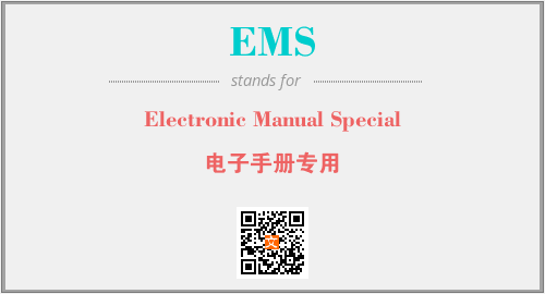 英文缩略词“EMS”经常作为“Electronic Manual Special”的英文缩写来使用,中文表示:“电子手册专用”。本文将详细介绍英文缩写词EMS所代表英文单词,其对应的中文拼音、详细解释以及在英语中的流行度。此外,还有关于缩略词EMS的分类、应用领域及相关应用示例等。