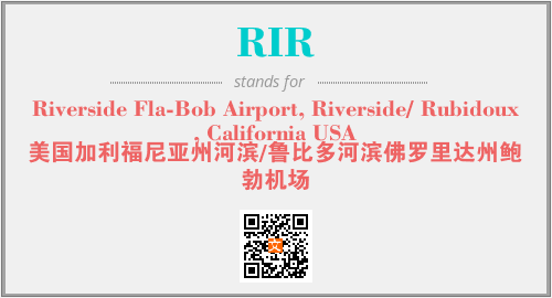 以上为Riverside Fla-Bob Airport, Riverside/ Rubidoux, California USA英文缩略词RIR的中文解释,以及该英文缩写在英语的流行度、分类和应用领域方面的信息。