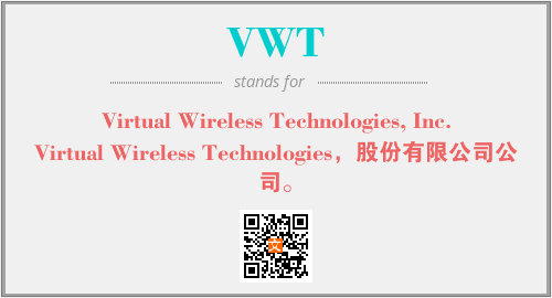 上述内容是“Virtual Wireless Technologies, Inc.”作为“VWT”的缩写,解释为“Virtual Wireless Technologies,股份有限公司公司。”时的信息,以及英文缩略词VWT所代表的英文单词,其对应的中文拼音、详细解释以及在英文中的流行度和相关分类、应用领域及应用示例等。