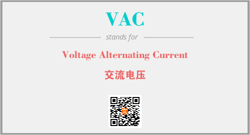 英文缩略词“VAC”经常作为“Voltage Alternating Current”的英文缩写来使用,中文表示:“交流电压”。本文将详细介绍英文缩写词VAC所代表英文单词,其对应的中文拼音、详细解释以及在英语中的流行度。此外,还有关于缩略词VAC的分类、应用领域及相关应用示例等。