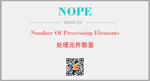上述内容是“Number Of Processing Elements”作为“NOPE”的缩写,解释为“处理元件数量”时的信息,以及英文缩略词NOPE所代表的英文单词,其对应的中文拼音、详细解释以及在英文中的流行度和相关分类、应用领域及应用示例等。