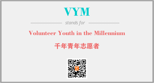 英文缩略词“VYM”经常作为“Volunteer Youth in the Millennium”的英文缩写来使用,中文表示:“千年青年志愿者”。本文将详细介绍英文缩写词VYM所代表英文单词,其对应的中文拼音、详细解释以及在英语中的流行度。此外,还有关于缩略词VYM的分类、应用领域及相关应用示例等。