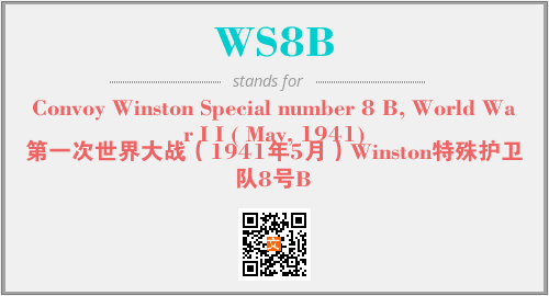 上述内容是“Convoy Winston Special number 8 B, World War I I ( May, 1941)”作为“WS8B”的缩写,解释为“第一次世界大战(1941年5月)Winston特殊护卫队8号B”时的信息,以及英文缩略词WS8B所代表的英文单词,其对应的中文拼音、详细解释以及在英文中的流行度和相关分类、应用领域及应用示例等。
