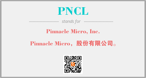 上述内容是“Pinnacle Micro, Inc.”作为“PNCL”的缩写,解释为“Pinnacle Micro,股份有限公司。”时的信息,以及英文缩略词PNCL所代表的英文单词,其对应的中文拼音、详细解释以及在英文中的流行度和相关分类、应用领域及应用示例等。