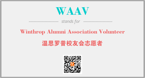 上述内容是“Winthrop Alumni Association Volunteer”作为“WAAV”的缩写,解释为“温思罗普校友会志愿者”时的信息,以及英文缩略词WAAV所代表的英文单词,其对应的中文拼音、详细解释以及在英文中的流行度和相关分类、应用领域及应用示例等。
