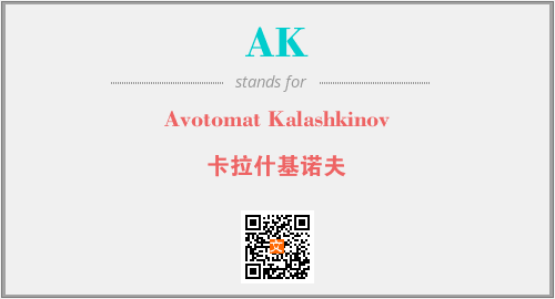 上述内容是“Avotomat Kalashkinov”作为“AK”的缩写,解释为“卡拉什基诺夫”时的信息,以及英文缩略词AK所代表的英文单词,其对应的中文拼音、详细解释以及在英文中的流行度和相关分类、应用领域及应用示例等。