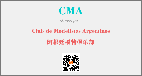 英文缩略词“CMA”经常作为“Club de Modelistas Argentinos”的英文缩写来使用,中文表示:“阿根廷模特俱乐部”。本文将详细介绍英文缩写词CMA所代表英文单词,其对应的中文拼音、详细解释以及在英语中的流行度。此外,还有关于缩略词CMA的分类、应用领域及相关应用示例等。
