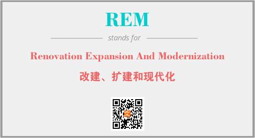 英文缩略词“REM”经常作为“Renovation Expansion And Modernization”的英文缩写来使用,中文表示:“改建、扩建和现代化”。本文将详细介绍英文缩写词REM所代表英文单词,其对应的中文拼音、详细解释以及在英语中的流行度。此外,还有关于缩略词REM的分类、应用领域及相关应用示例等。