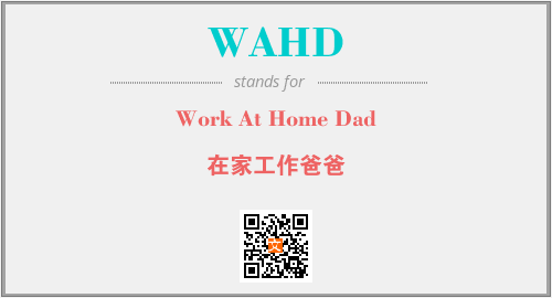 上述内容是“Work At Home Dad”作为“WAHD”的缩写,解释为“在家工作爸爸”时的信息,以及英文缩略词WAHD所代表的英文单词,其对应的中文拼音、详细解释以及在英文中的流行度和相关分类、应用领域及应用示例等。