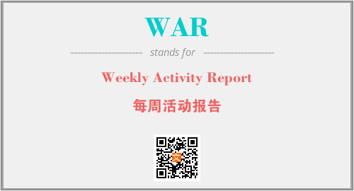 上述内容是“Weekly Activity Report”作为“WAR”的缩写,解释为“每周活动报告”时的信息,以及英文缩略词WAR所代表的英文单词,其对应的中文拼音、详细解释以及在英文中的流行度和相关分类、应用领域及应用示例等。