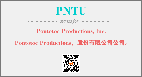 上述内容是“Pontotoc Productions, Inc.”作为“PNTU”的缩写,解释为“Pontotoc Productions,股份有限公司公司。”时的信息,以及英文缩略词PNTU所代表的英文单词,其对应的中文拼音、详细解释以及在英文中的流行度和相关分类、应用领域及应用示例等。