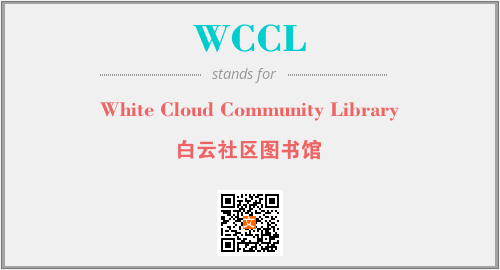 上述内容是“White Cloud Community Library”作为“WCCL”的缩写,解释为“白云社区图书馆”时的信息,以及英文缩略词WCCL所代表的英文单词,其对应的中文拼音、详细解释以及在英文中的流行度和相关分类、应用领域及应用示例等。