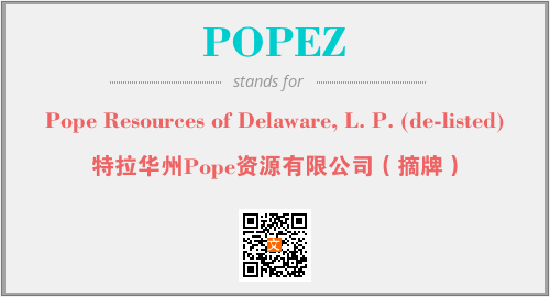 上述内容是“Pope Resources of Delaware, L. P. (de-listed)”作为“POPEZ”的缩写,解释为“特拉华州Pope资源有限公司(摘牌)”时的信息,以及英文缩略词POPEZ所代表的英文单词,其对应的中文拼音、详细解释以及在英文中的流行度和相关分类、应用领域及应用示例等。