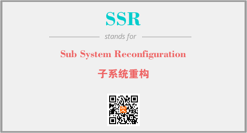 英文缩略词“SSR”经常作为“Sub System Reconfiguration”的英文缩写来使用,中文表示:“子系统重构”。本文将详细介绍英文缩写词SSR所代表英文单词,其对应的中文拼音、详细解释以及在英语中的流行度。此外,还有关于缩略词SSR的分类、应用领域及相关应用示例等。