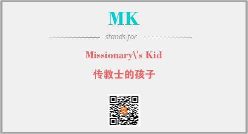 以上为Missionary\'s Kid英文缩略词MK的中文解释,以及该英文缩写在英语的流行度、分类和应用领域方面的信息。