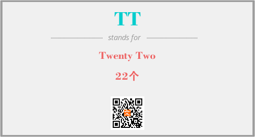 上述内容是“Twenty Two”作为“TT”的缩写,解释为“22个”时的信息,以及英文缩略词TT所代表的英文单词,其对应的中文拼音、详细解释以及在英文中的流行度和相关分类、应用领域及应用示例等。