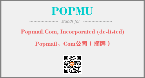 上述内容是“Popmail.Com, Incorporated (de-listed)”作为“POPMU”的缩写,解释为“Popmail。Com公司(摘牌)”时的信息,以及英文缩略词POPMU所代表的英文单词,其对应的中文拼音、详细解释以及在英文中的流行度和相关分类、应用领域及应用示例等。