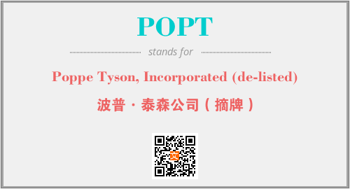 以上为Poppe Tyson, Incorporated (de-listed)英文缩略词POPT的中文解释,以及该英文缩写在英语的流行度、分类和应用领域方面的信息。