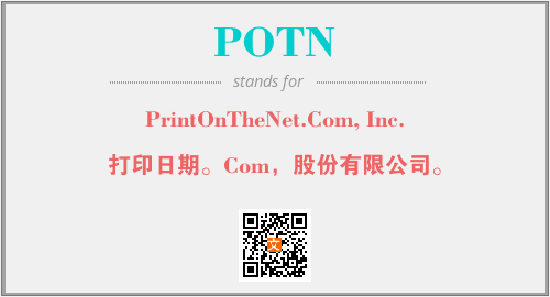上述内容是“PrintOnTheNet.Com, Inc.”作为“POTN”的缩写,解释为“打印日期。Com,股份有限公司。”时的信息,以及英文缩略词POTN所代表的英文单词,其对应的中文拼音、详细解释以及在英文中的流行度和相关分类、应用领域及应用示例等。