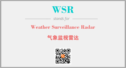 上述内容是“Weather Surveillance Radar”作为“WSR”的缩写,解释为“气象监视雷达”时的信息,以及英文缩略词WSR所代表的英文单词,其对应的中文拼音、详细解释以及在英文中的流行度和相关分类、应用领域及应用示例等。